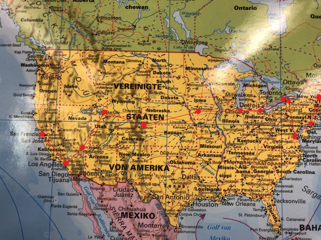 Reisroute von Ina und Peter durch die USA von der Ostküste quer durch bis zur Westküste